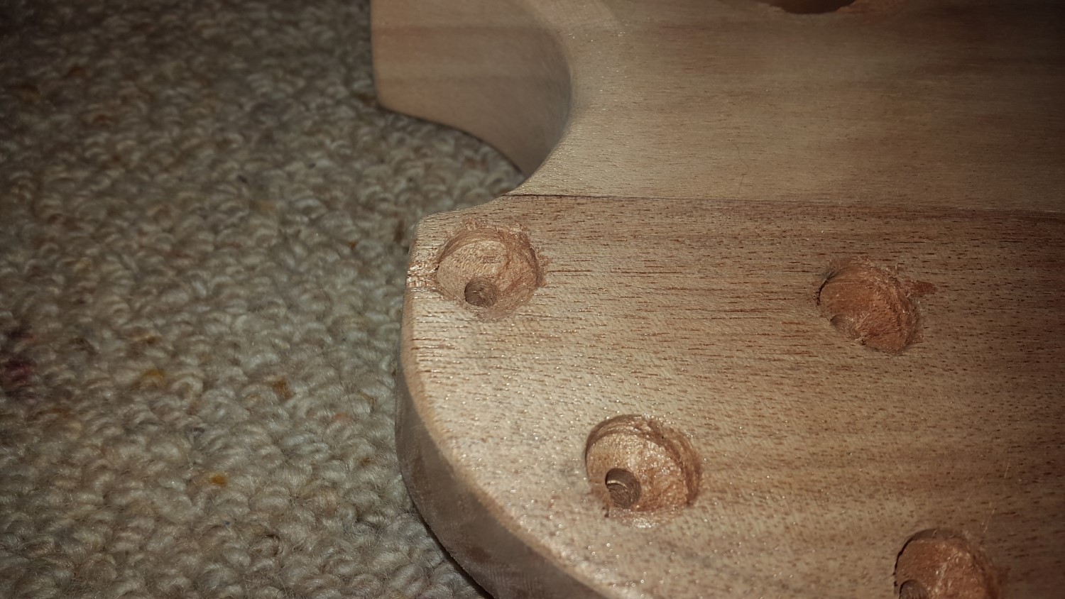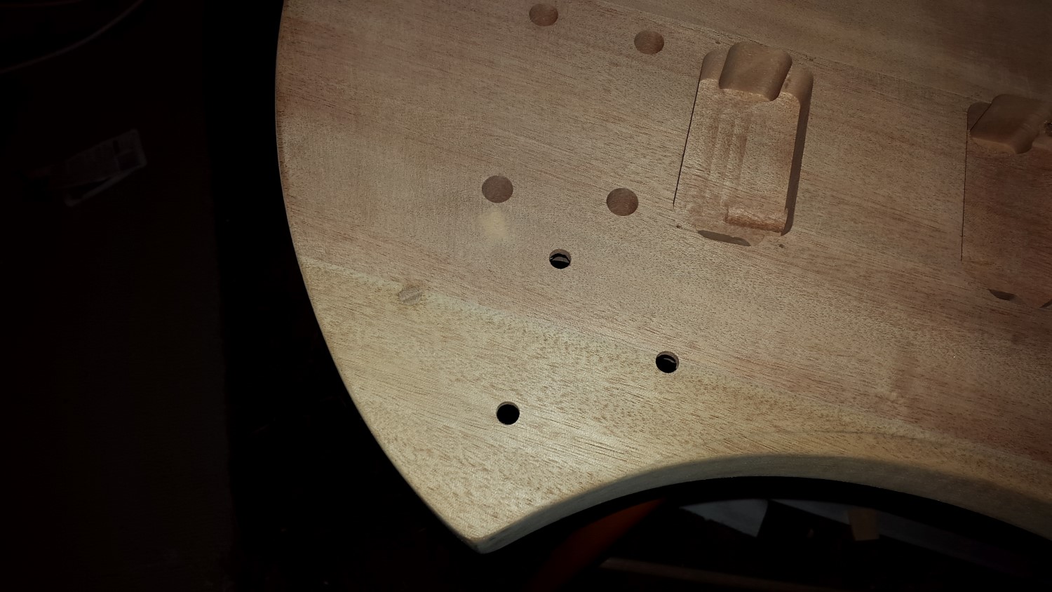 Now for my planned modifications: Carving the heel joint to help out the upper fret access, shaving away the back of the top horn to make it a little more comfy and less stabby, and a non-standard-for-MBs/LPs wiring scheme (1V, 2T, with Push-Pulls, I originally planned for individual coil taps, but I might make it a Master tap, and either Master Phase or Series/Parallel).