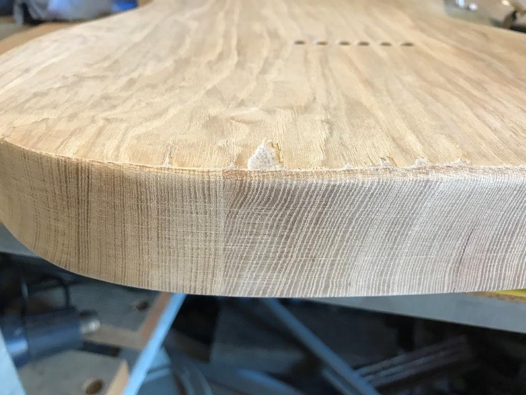 Have just pulled it all down to start working on the finish. There appears to be a thin laminate covering the entire back of the body, have just notices the edge splintering slightly whilst sanding the edge and visible glue line, do all the tl have this laminate cover on the back?