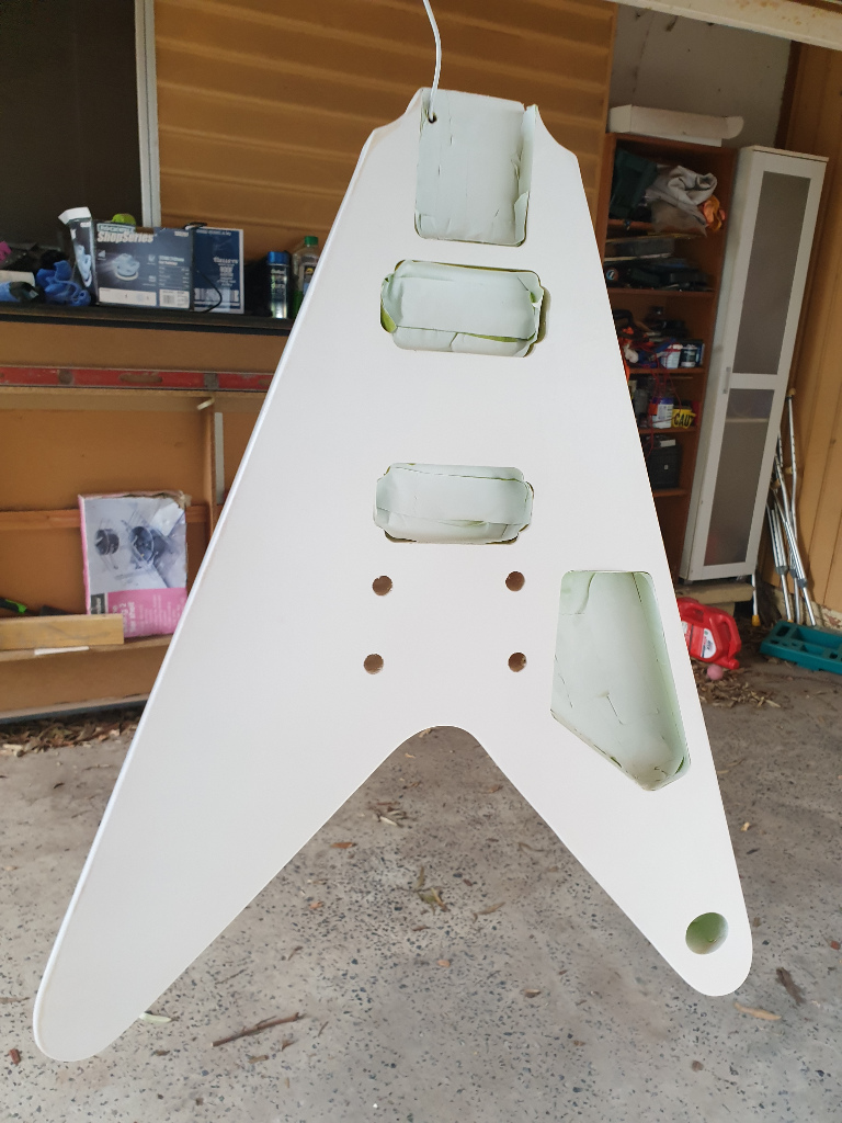 I considered buying a white Flying V pickguard but a standard Gibson pickguard doesn't line up with all the holes. Didn't even bother checking the dimensions but I'd be surprised if they're the same. A few extra holes that go nowhere would be kinda crap.