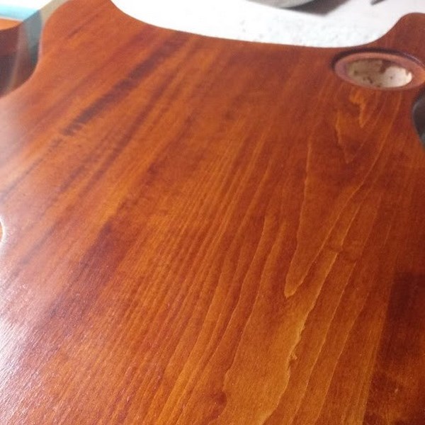 Gone purple since I had it .... a couple of glue spots which would not remove, stained the top let it dry a while, lightly sanded with 1500 then re applied, covered it up better but not perfect.. hey ho...