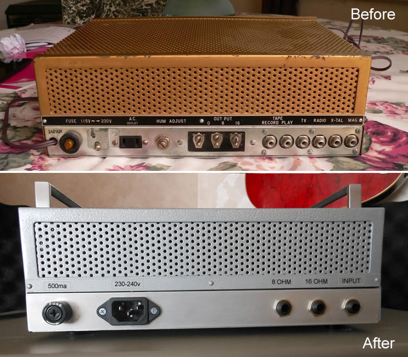 During the planning of a scratch built tube amp, I came across a 1960’s 16w Japanese mono hi fi amp for $100 on Trade Me. With 3 X 12AX7’s in the front end, a push-pull output stage with 2 X EL84’s and a 6CA4 rectifier tube, it had all the ingredients for a low cost, easy, re-purposing project.