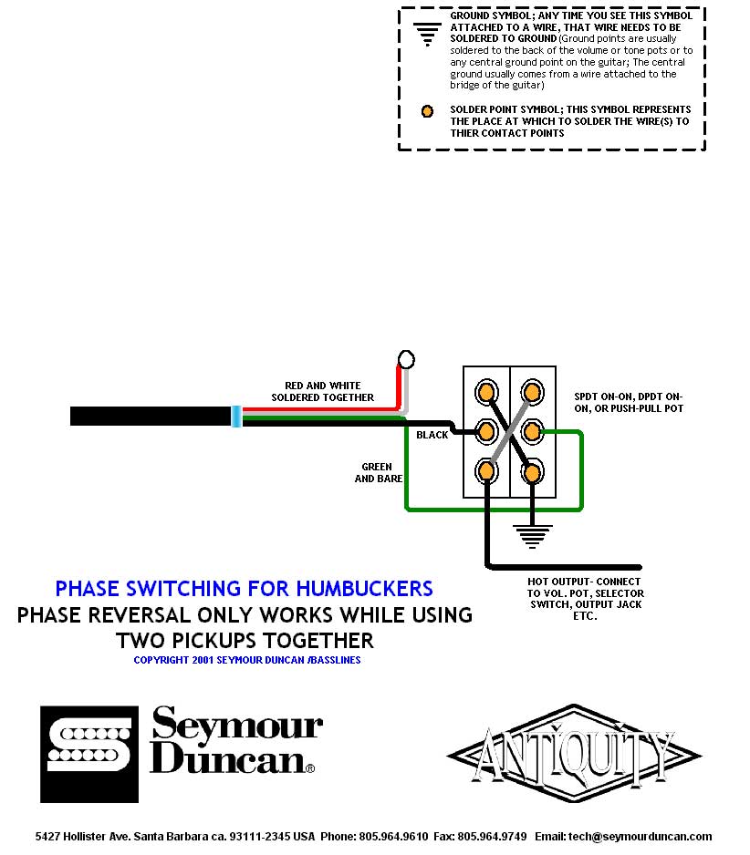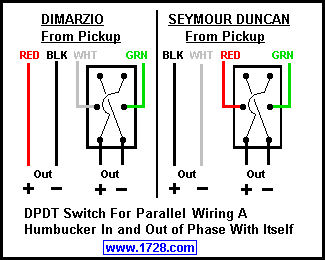 Out of phase or split? The two wires connected together are usually the series link combining the two coils of a rail or humbucker, so shorting that to ground or output with a switch allows you to split to a specific coil. Which coil you want to split to depends on the brand of pickup and potentially what other pickup you're wanting to combine it with.