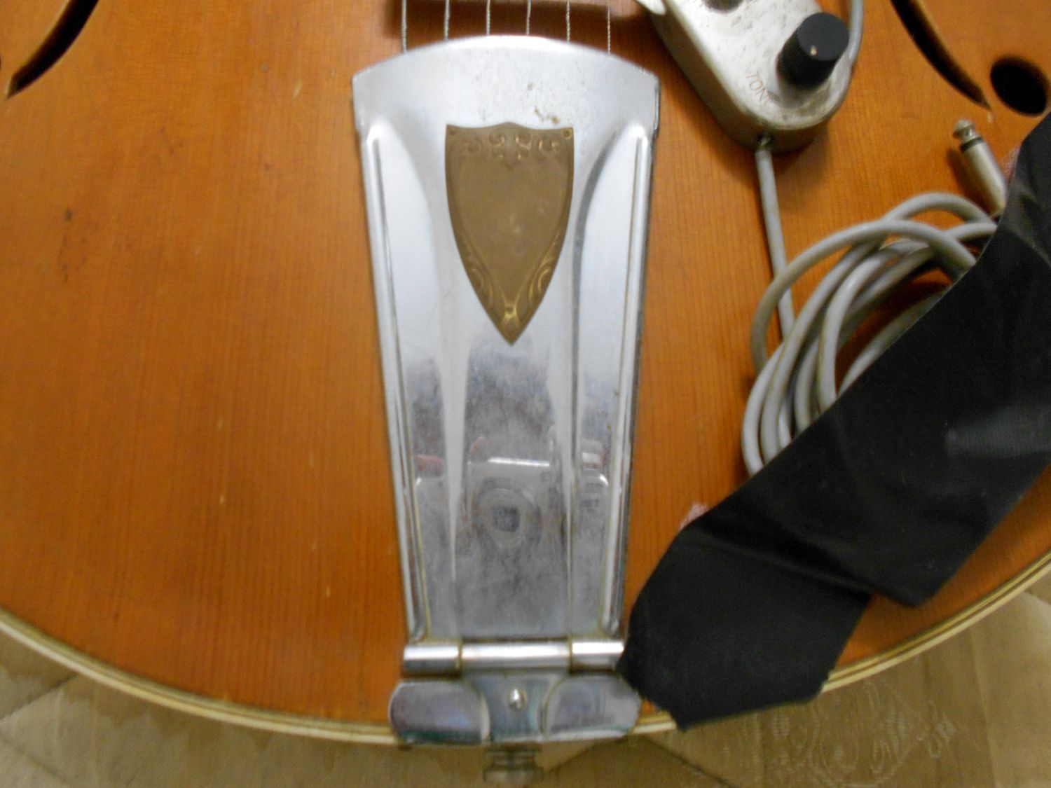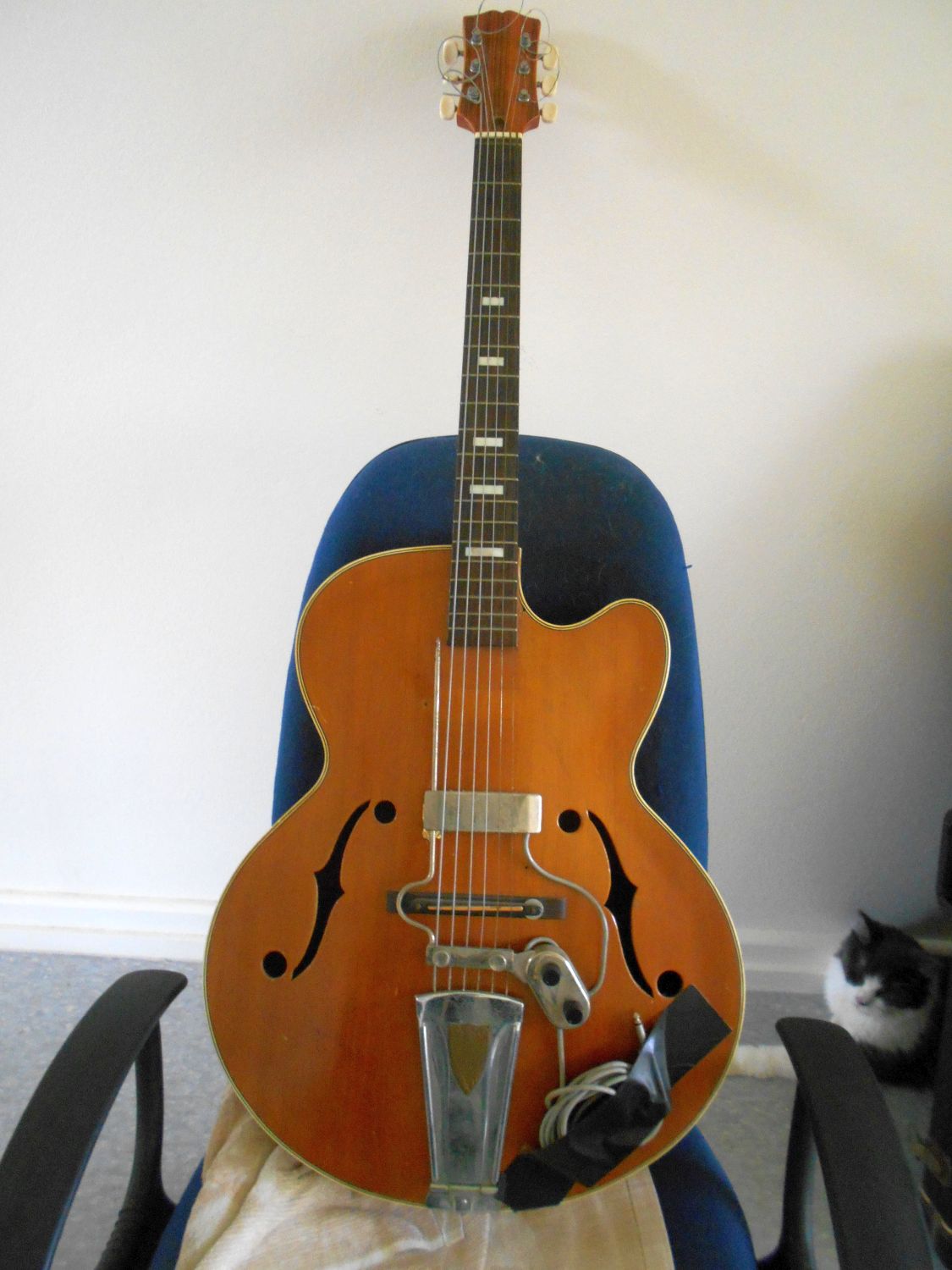 Waz, remember that it was an acoustic to start with. The DeArmond pickup is very much as aftermarket attachment, though if it is a Nardan, they could be bought fitted with a similar (but more basic) add-on Teisco pickup.