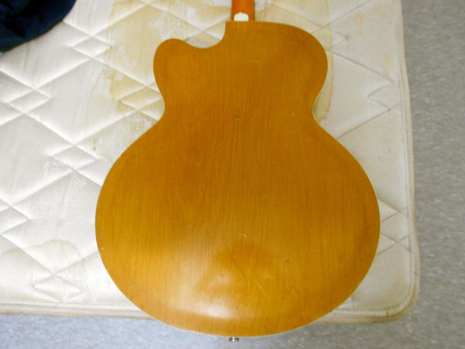 The body of the guitar has white binding on the front and back edges too, the finish looks like it could have been done in Shellac, maybe one of you out there might be more knowledgeable about it, anyway, I think it looks cool.