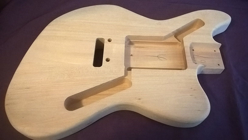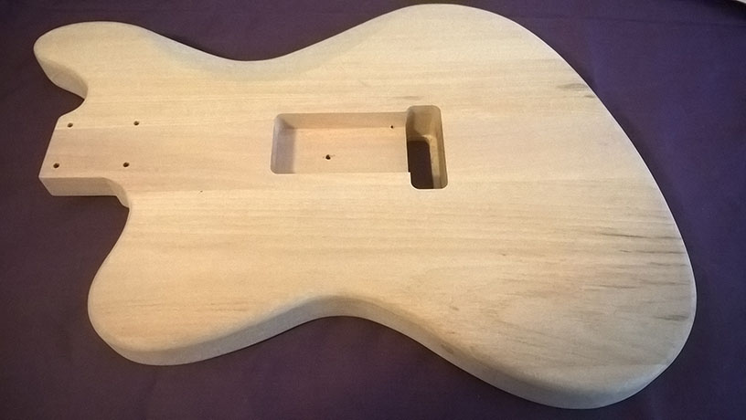 As this is my first build I was planning to keep things as simple as possible: just stock, sand and stain. However, the day I got my kit I found Zeromick's JM-1 mashup build diary and was both impressed and inspired. Zeromick's build is pretty much what I wish I could do. I like the look of the JM-1 but I'm not a fan of tremolo bridges and I don't much care for the pickup configuration in the pearloid red pickguard.