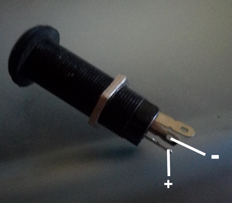 The stereo barrel jack that come with the kits can be tricky to wire as they can vary from time to time, and don't necessarily match the Switchcraft style lug layout. A multimeter is the best way to test which lugs are hot and ground (+/-), or just trial and error when you connect it. Usually these lugs are the ones to use (but it can vary between batches):