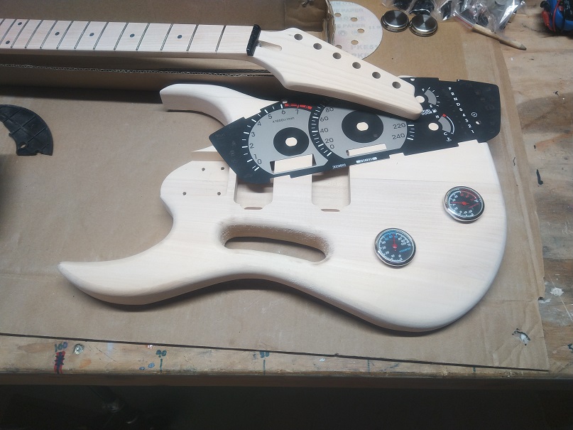 Hi, about time to build my first Pit Bull guitar kit, an XB-1. Good looking kit. Thanks to Adam for his help customising the kit with upgraded pickup and machine heads. I'm planning to give it a bit of an automotive feel with some small auto gauges, and a dash fascia (speedo, tacho display).