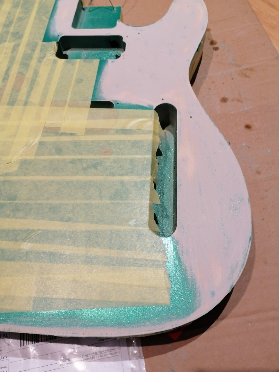 Hello fellas, I am new to this.. And as you imagined I messed up the paint on my guitar, I wanted to do a green flake but the base colour dripped at a couple of places.. The question is do I sand the spots and redo them or do I sand the whole guitar and respray?