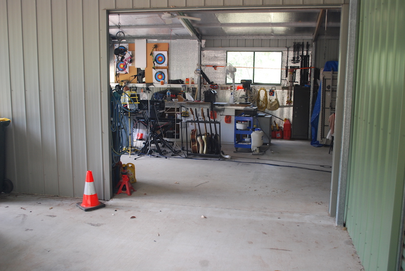I don't have a shed, I have a single car garage that requires I move the car out and put up a folding table to work on. I also have a double carport that doubles as a spray area. I do have a nice office however.
