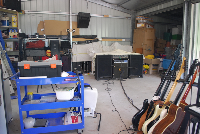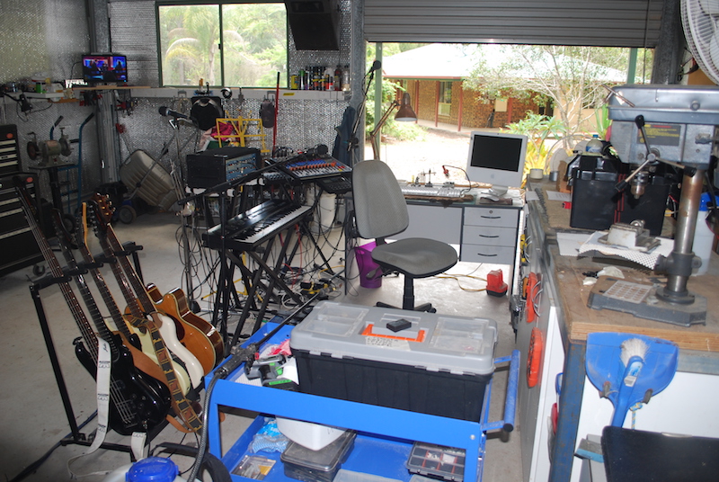 Since moving the car project on I've been gradually reclaiming the space. Its now a workshop come office/hobby room. I'd love to sound proof and insulate it properly (how do you like the $200 Kmart insulation job? Works really well!) but we are probably going to sell and get a bigger place (with a better music area I hope) in the next year or so, so not worth the outlay. It works fine as Is and I can still open the roller doors and let a breeze through. Been a scorcher outside today, but surprisingly pleasant inside, apart from the dust and 1000 odd displaced spiders.