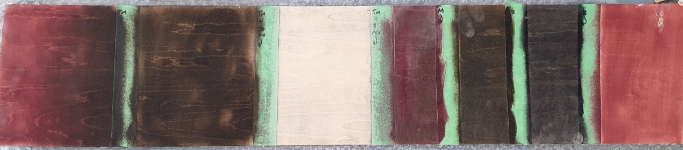 Wishing to get an idea on what the stains could look like, i grabbed some Feast Watson Prooftint Interior Stain in mahogany and black. Ened up ordering some ColorTone Guitar Stain red mahogany and black as well.