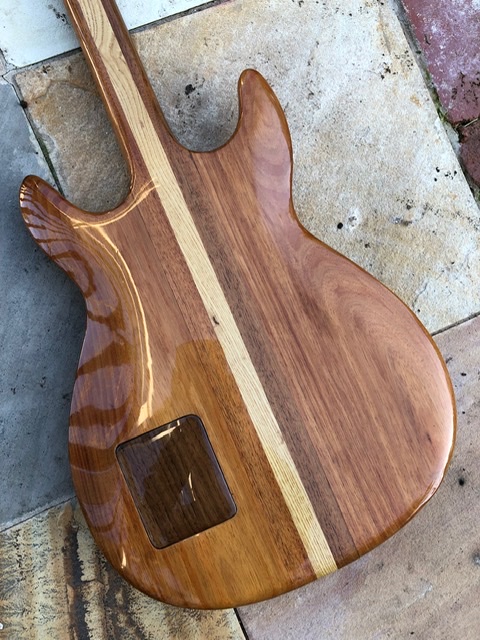 Blackwood and ash back weight relieved, blackwood and black veneer between stringybark pieces