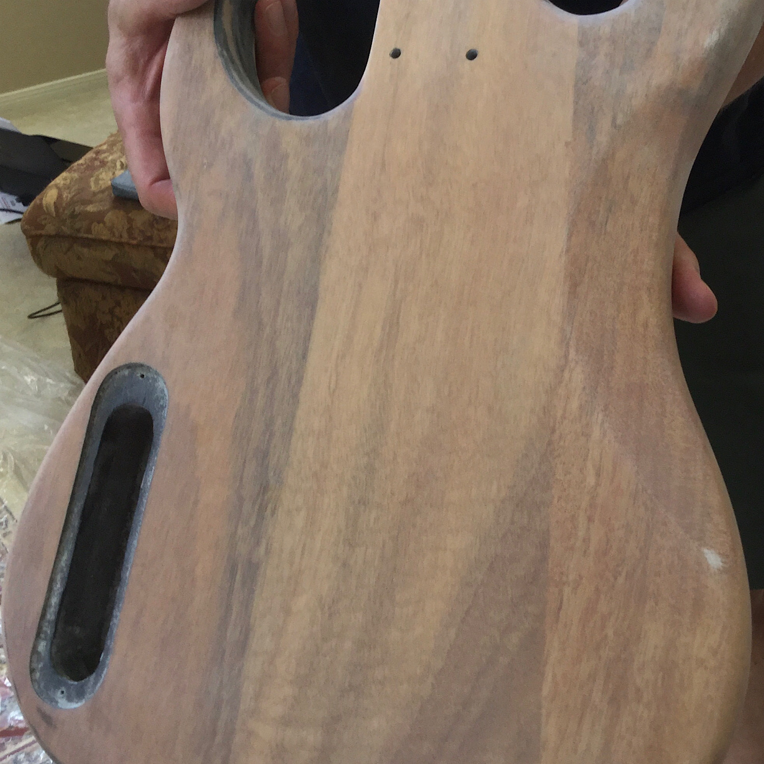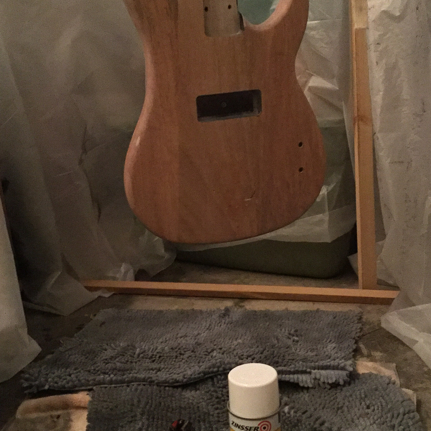 I sanded most of the original finish off. Let’s see if I can do a decent nitro finish this time. New bridge, new nut, bigger tuners. I hope I can do it right.