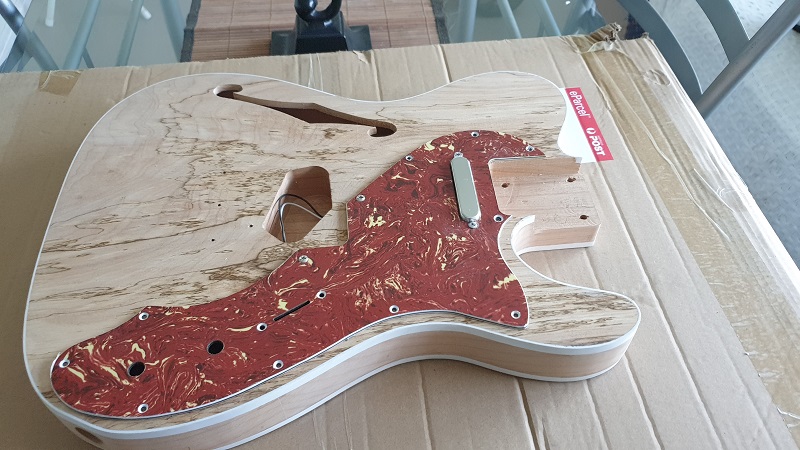 This one is multiple piece....routed out...capped...and then I think a spalted maple veneer has been attached. For an ash body this is by far the lightest of the ones I have...by a mile.