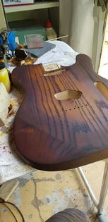 The neck is finished and I am really happy with the way it turned out, body is stained but still needs to have clear coat sprayed.