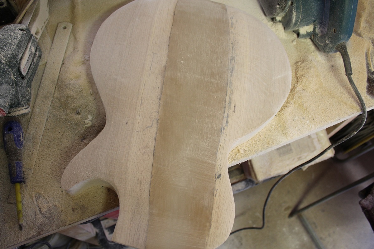 Shaping the top of the LP shape was hard work as the edge 5/8inch is flat and the body bulge then starts. Sanding resin is hard work even with 40 grit pads and a belt sander.