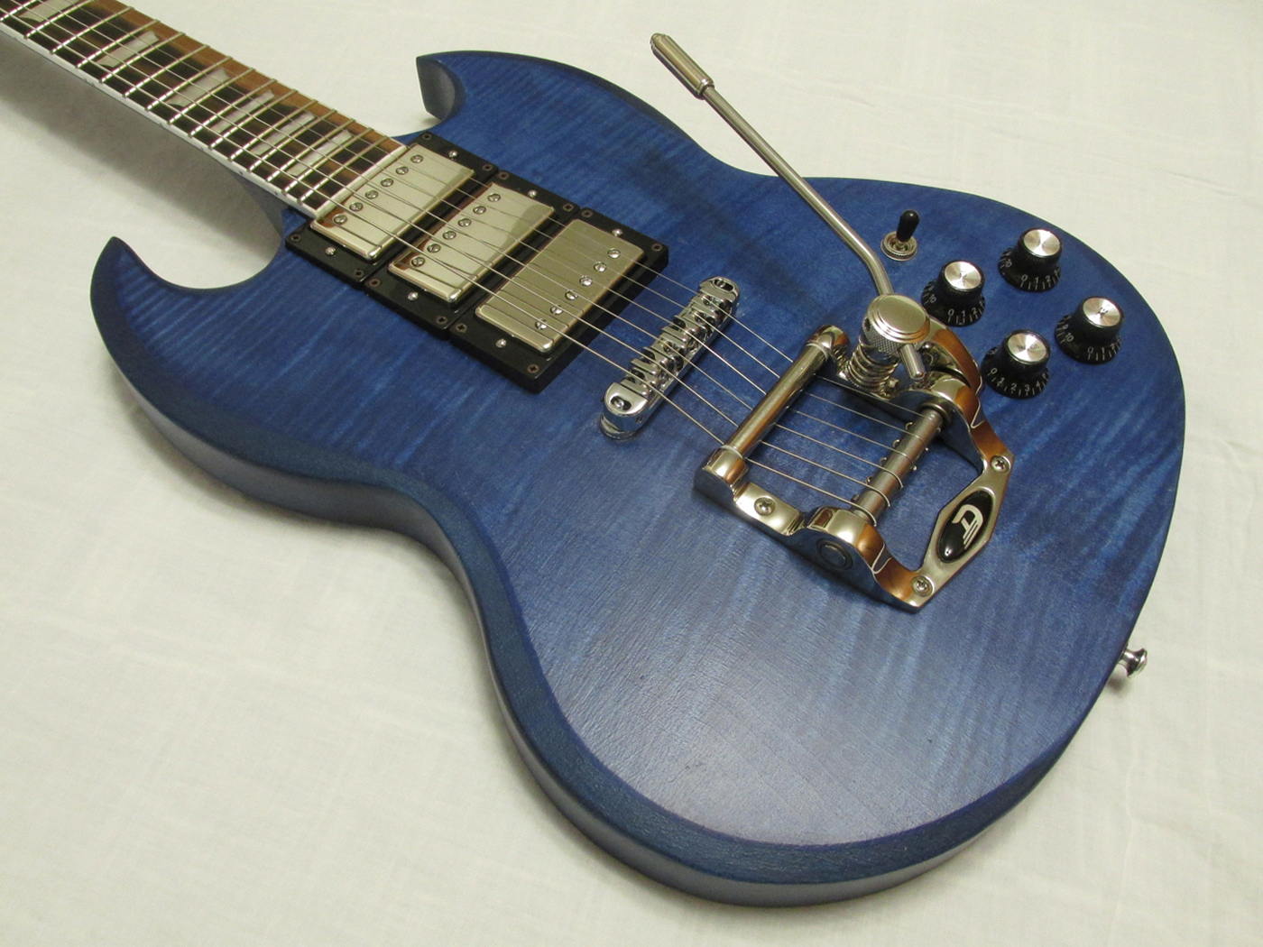 Mahogany body - Maple top - Transparent blue satin finish