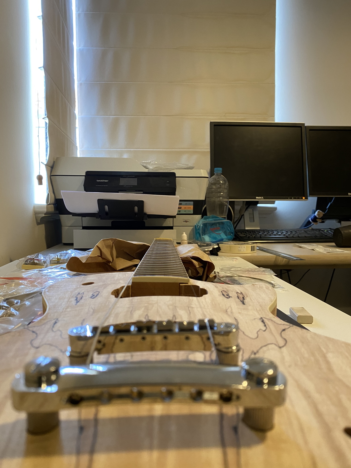 I've got no issue with the electronics side (I work in electrical engineering) but I'm pretty thin on the ground when it comes to the physical stuff e.g. gluing necks, setting up action, woodwork finishing etc.