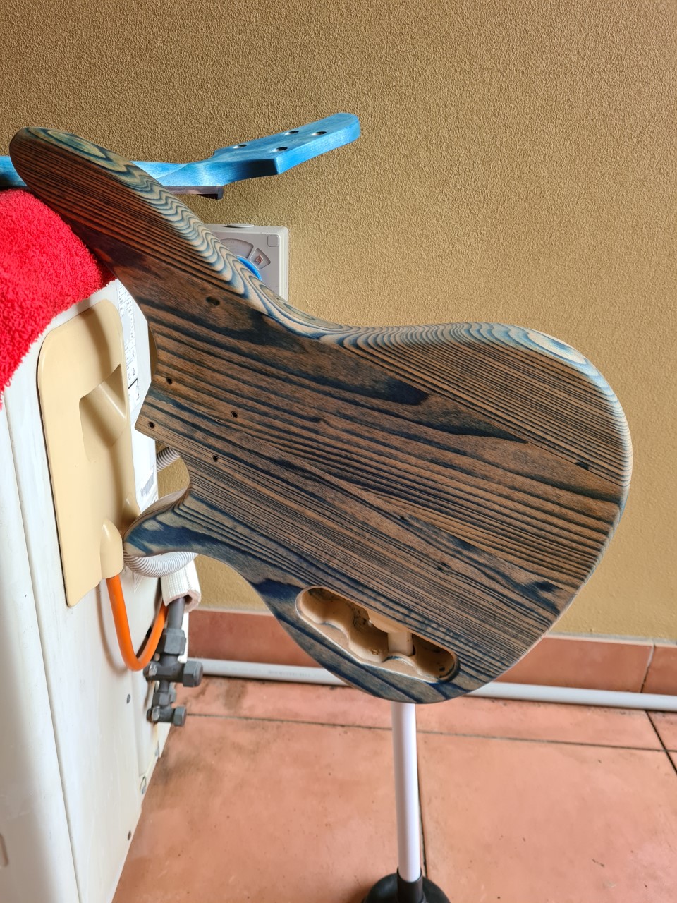 Ultimately I'm not unhappy with the outcome. I was hoping for a much different blue, instead I got a natural colour with blue accents in the grain. It plays and holds tune so I can't really complain.