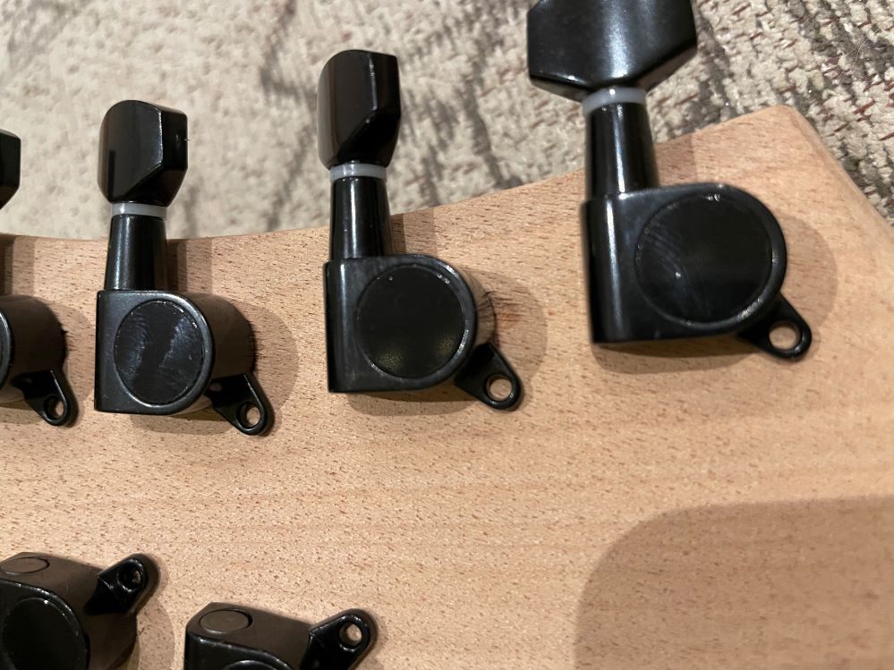 Hi all, I got this kit as a christmas present to myself and have been doing bits and pieces in between spending time with the family. As mentioned in my welcome thread i noticed some tearout on the back of the headstock during my initial unboxing which unfortunately isn't completely covered by the tuners so will need some filling.