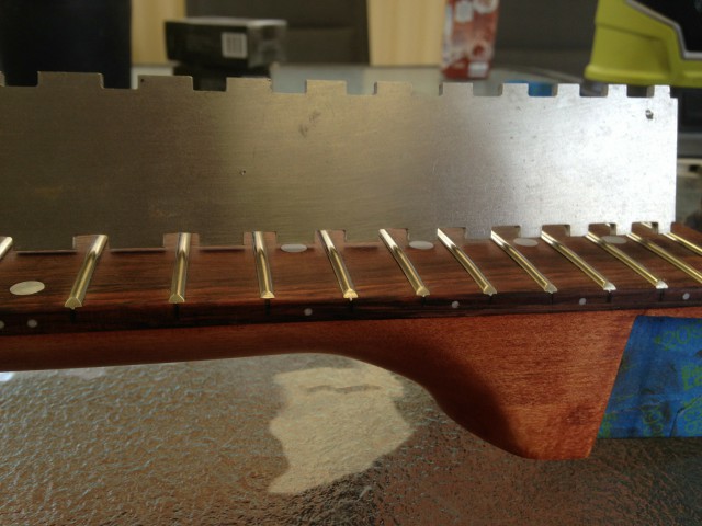 I have a problem with the neck I checked it with a notched straight edge and it's a strange slope. If I put the straight edge on the first two frets there is a large gap at the joint end. Some pictures.