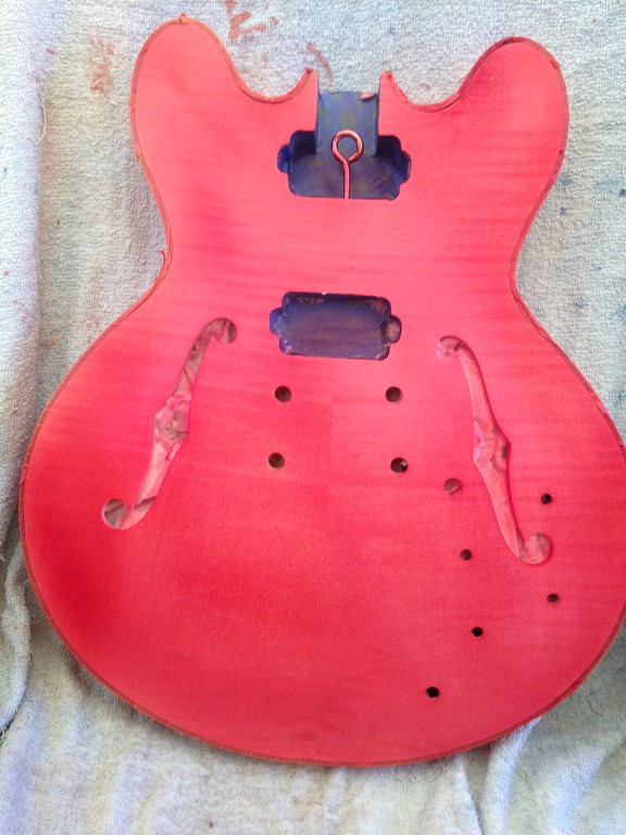 Thanks Brendan, I've sorted the neck. Have highlighted the grain with timbermate and sanded to 320. I gave the body it's first coat of colour yesterday and this how it came out. It's not as pink in the flesh.