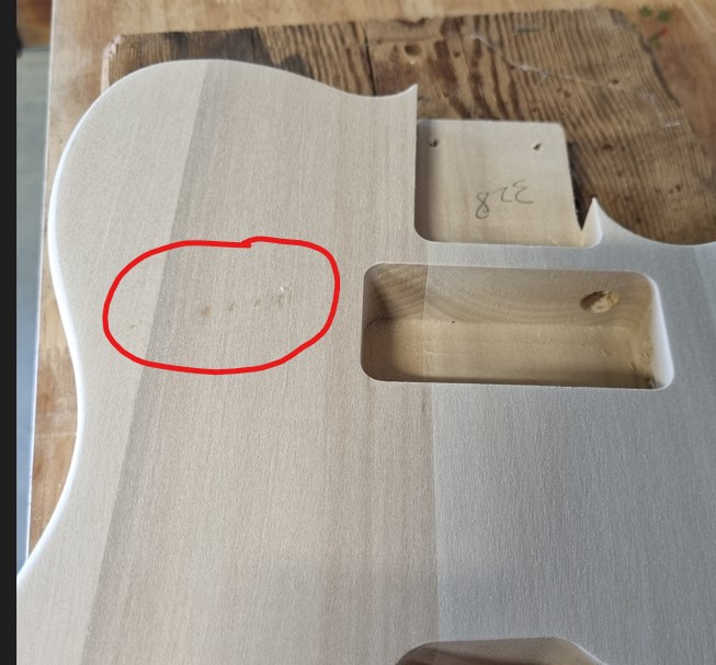 Starting to sand body and have highlighted some marks, not sure if keep going to see if I can remove? Not sure if it will sand out, did clean it up a bit but appears to be quite deep.