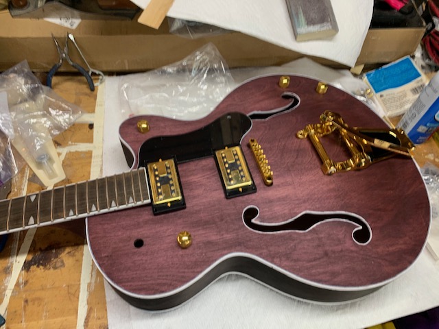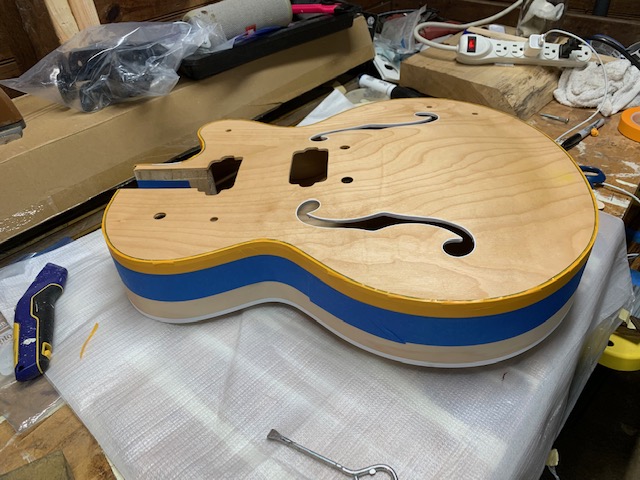My big question is for next steps as I have not done a hollow body before. Do I set the neck, poly finish, and then fish the electronics through the pickup cavities? Or should I do the electronics (with or without that extra tubing to help keep everything together) and then set the neck and poly finish?