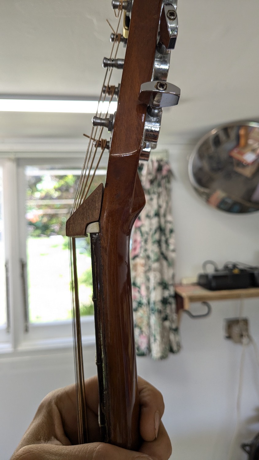 the "downside" is that I had to tune it down to open C (CGCGCD), that was the only string tension that seemed reasonable. In theory the whole idea was to make this mod to have a second lapsteel in a different key, like open D or open E since I already have a DYI made (electric) lapsteel tuned to C