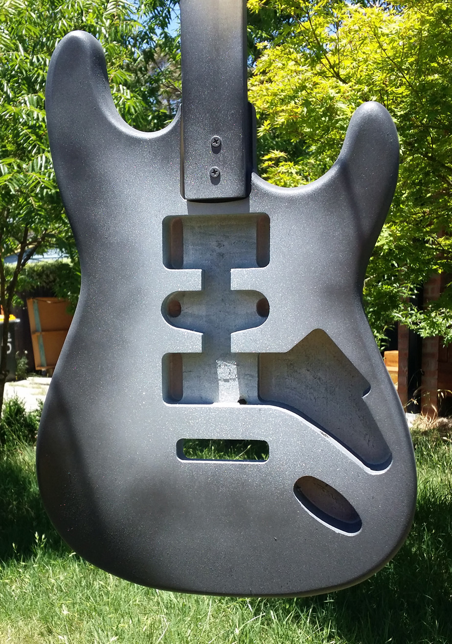The concept I'm going for is something atypical for a strat. In keeping with the TV silver LP, I'm going with silver as a base, but taking that a step further and trying a metallic silver (Dupli Color Metal Specks) and then I want to layer a smoky burst over that (Dupli Color Metalcast Smoke). Knowing my limitations, I'm not aiming for a super clean silverburst - I'm aiming for a "smokeburst", something a bit more organic and dirty. For hardware, I've gone for black across the board - but may consider a brushed metal pickguard. We'll see once the paint is done.