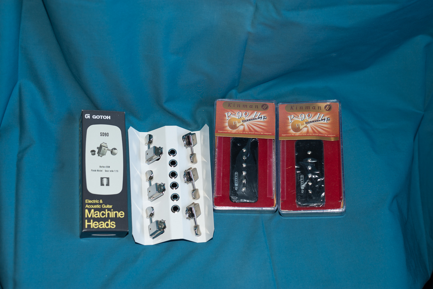 Tuners are nickel Gotoh metal button kluson types, all the volume / tone pots will be 500k boyle's, with orange cap's and braided vintage wiring, switches and plugs upgraded as well.