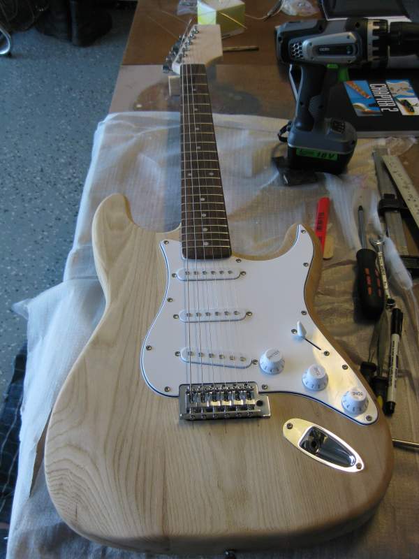 - Dry build the kit - ie put all the hardware in place, neck bridge etc before painting so I have all the holes drilled prior to painting