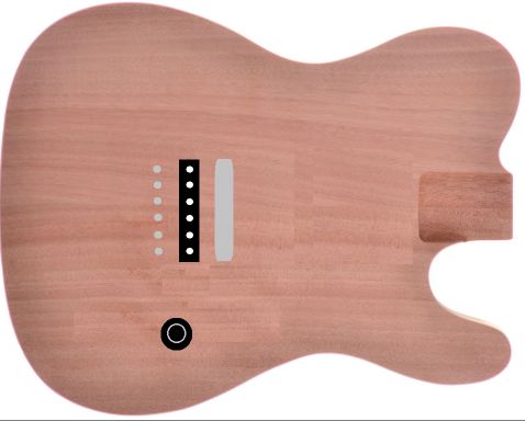 This one is made up out of a body blank that had a few routing injuries... Hence the different shape to the upper bout.