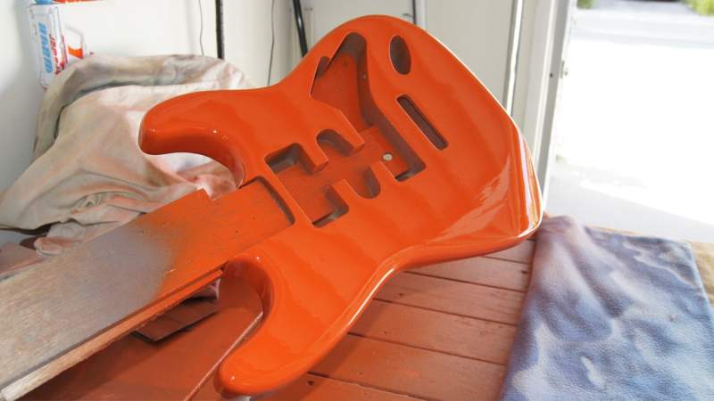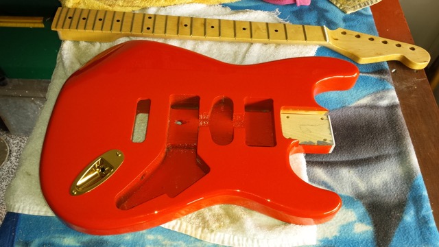 Coming along nicely. Colour will soon build up on the body. Looks like the neck has some nice figuring? Will look great with the fiesta red body and gold hardware. You've got to love a bit of Hank, I spent a lot of time learning Shadows numbers (especially love 'The Savage'). Are you going to shorten the whammy bar on this? Makes it easier to apply tremelo in the Hank style whilst still plucking away!