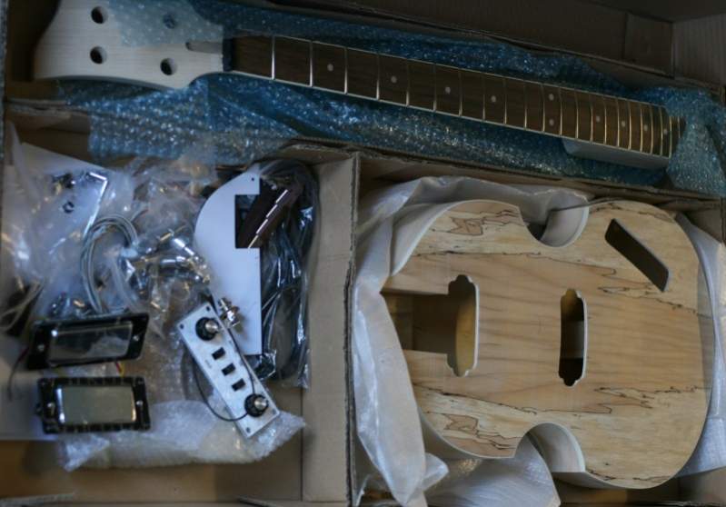 Attached is a shot of the raw bass. I was planning to buy a plain top kit so I could chemically ebonise the body with various iron-acetate treatments. Then I found a spalt top on special (and an Ebay coupon too!) - and that spalt is so nice I just can't bring myself to kill it.