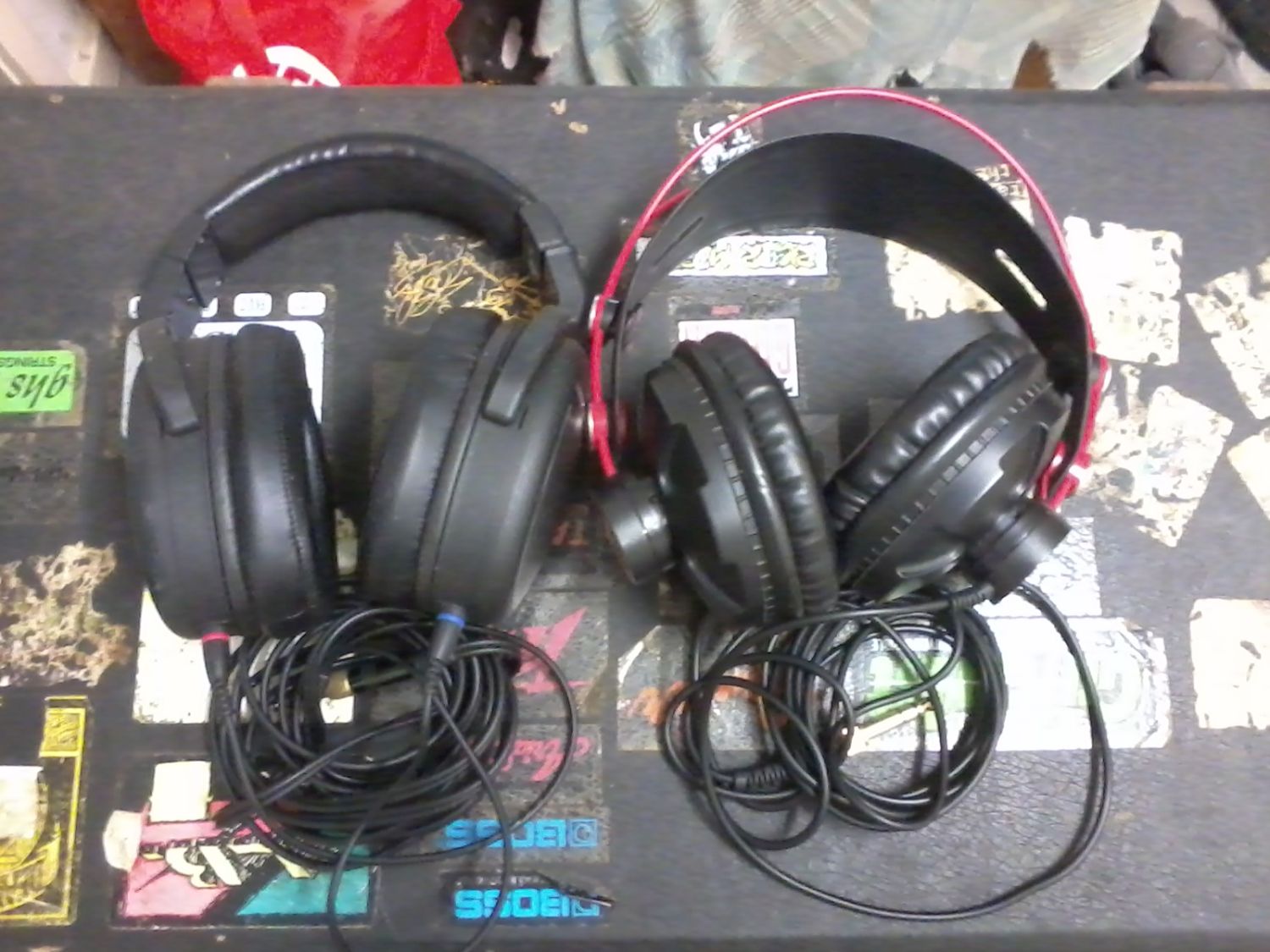 Here's a pic of the two headphones which I use in my little studio in my bedroom, on the left is a Digitech Pro DJ mixing headphone, the earmuffs completely enclose your ears so you don't hear any background sound, pretty comfortable to wear and has a nice HI-Fi-ish kind of tone, quoted frequency response is 10Hz to 22kHz, on the right is a Focusrite Scarlett Studio HP60 headphone, the earmuffs let in a little bit of the background noise, it has more of a warmer live-er tone compared to the Digitech, and works well when mixing a track.Click image for larger version.