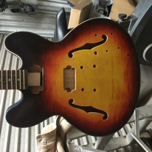 1. Grain fill. I wanted to try out grain filling on this build because I didn't do it on the ESB4 and even though I'm really happy with the ESB4 I kinda wished I'd grain filled it. Anyway I used mahogany Timbermate so hoped to get some nice reddish grain popping. Here's the sanded body: