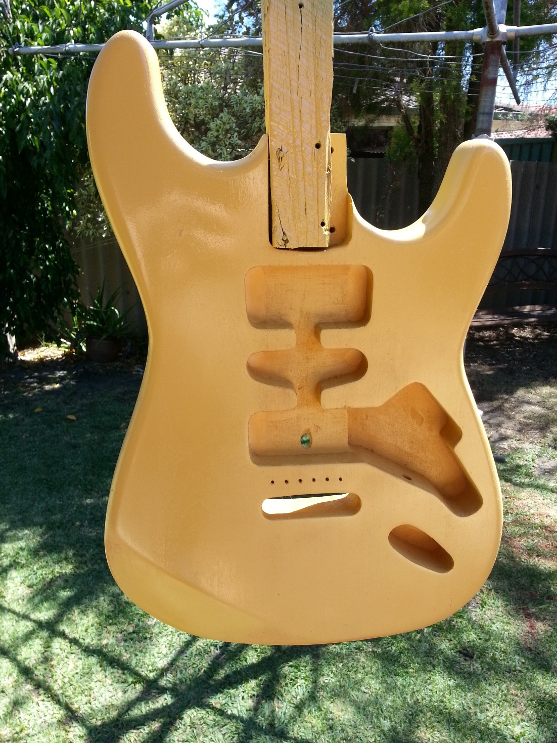 Here's a ST-1 body that Ads gave me was an early beta test for a Dingotone orange. so I've gone over it with a yellow oxide primer, not a bad colour. Also the label stash, all beers that I wouldn't enjoy much.