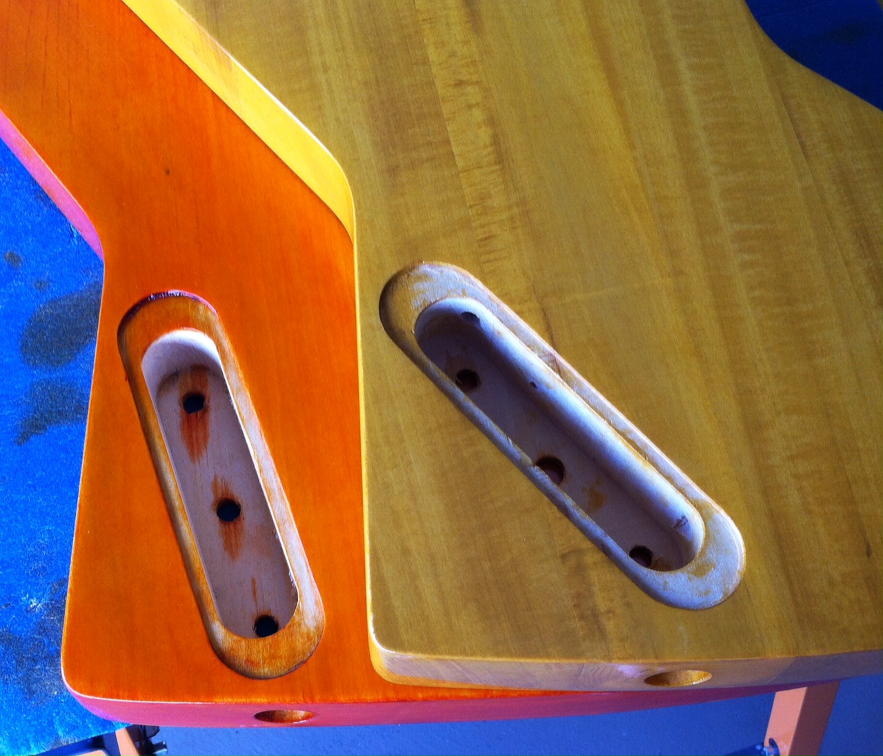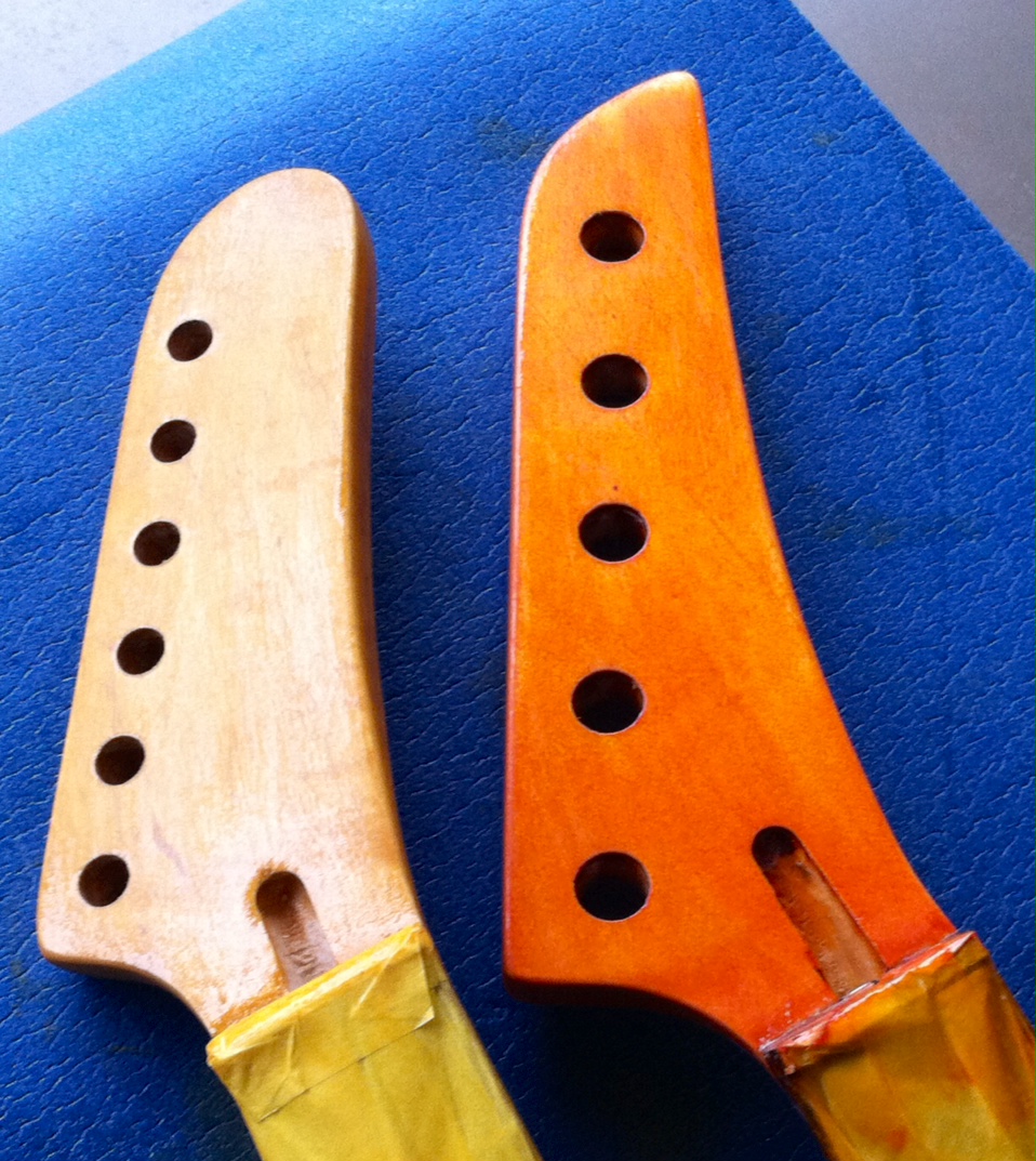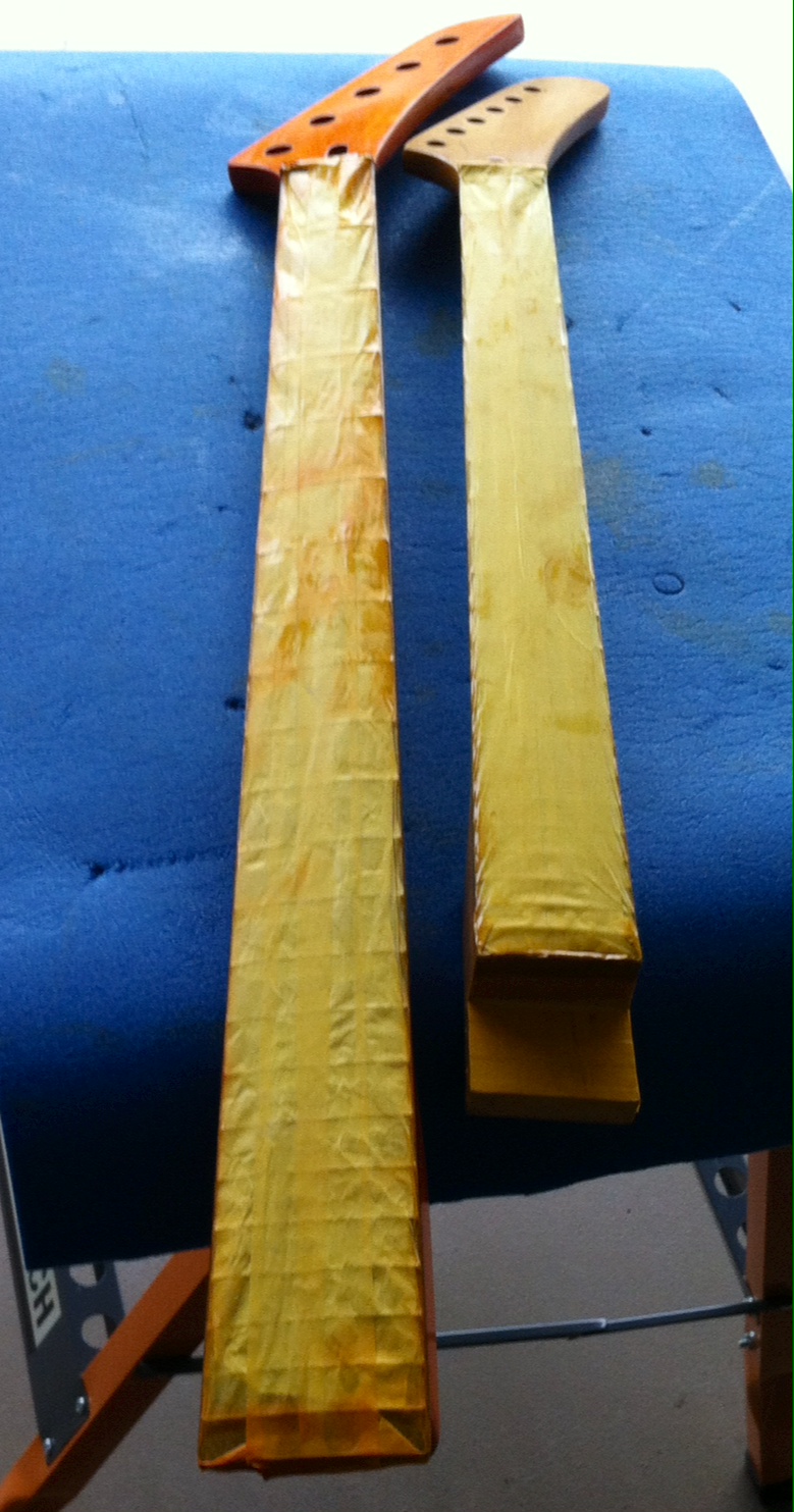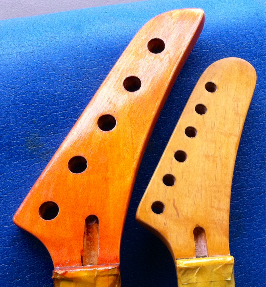Following neck shots have fret boards covered up as still finishing off but getting closer to fitting them to their respective bodies. Will post those shots as well to help show the differences.
