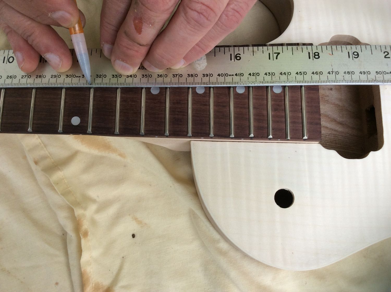 I recently purchased this 7 string DIY kit http://www.pitbullguitars.com/shop/g...-kit-ash-body/, and the specs state that the scale is 25.5''. When I measured the scale length the result was 24.66''. Is this measured correctly? or are the specs for the DIY guitar not correct? I have attached photos with this post.