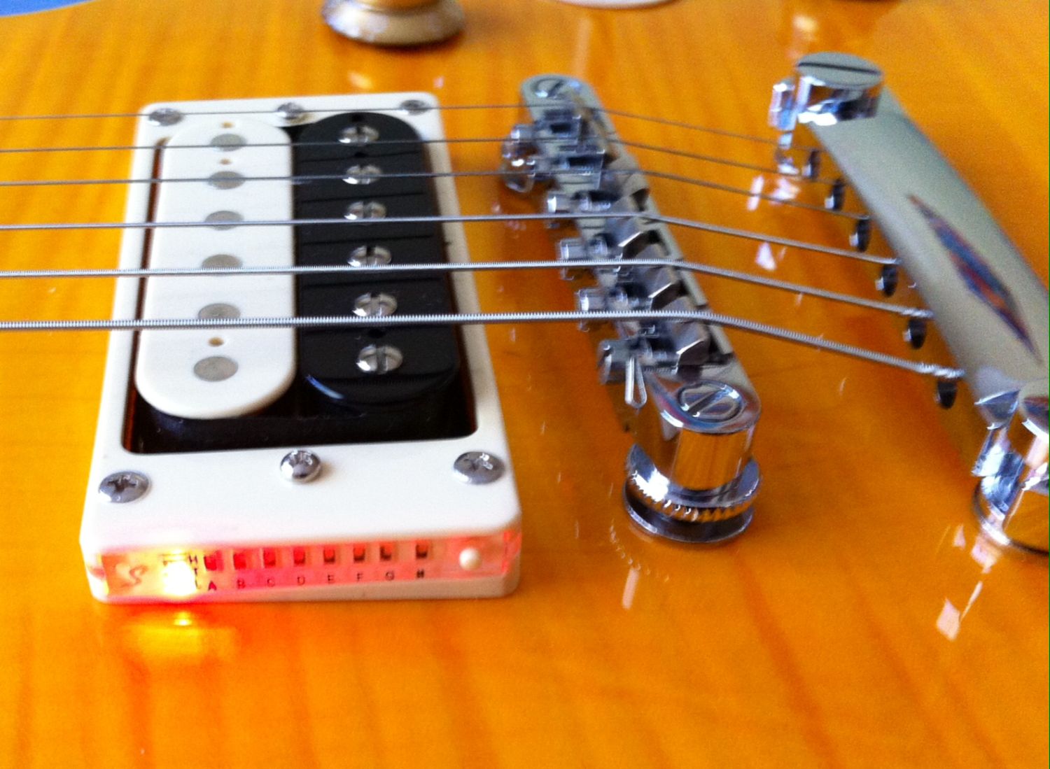 One of the cool and unique features on this guitar is the inbuilt tuner in the Bridge PUP.....