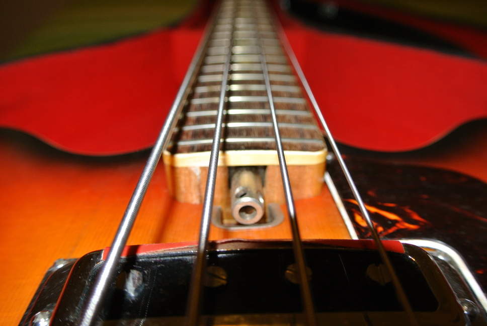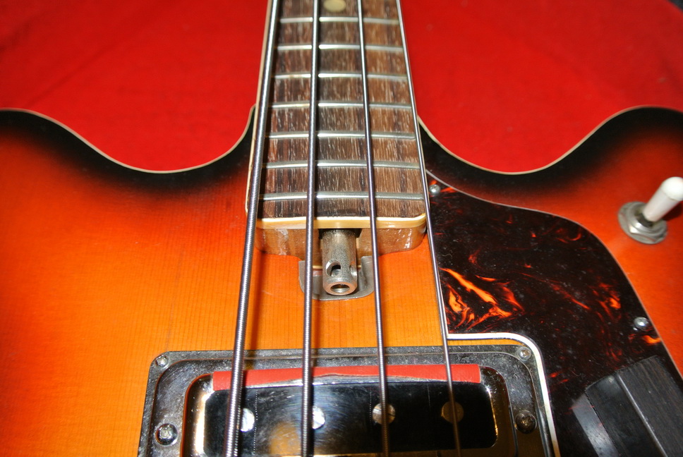 I would like to put a new neck on it and see if I can actually make it playable. It seems a shame to waste a nice-looking instrument, that actually sounds quite good, just like you'd expect a 50-y-o hollow-body bass with single coil pickups to sound. If I could put a decent neck on, it might make it easier to play. But, that's not going to be so easy.