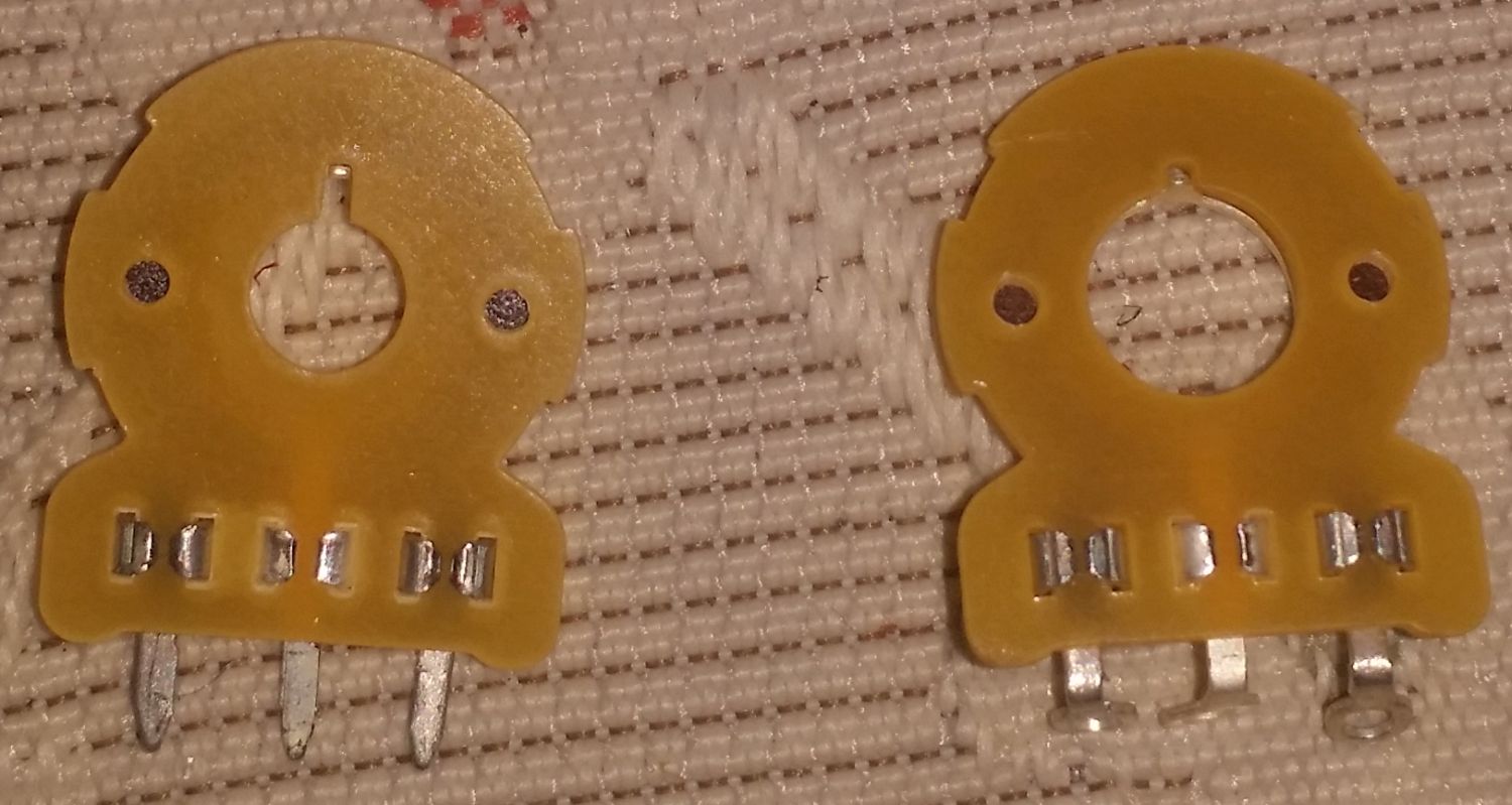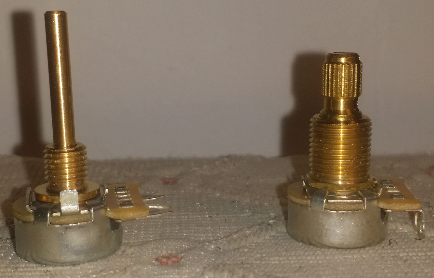 However, on the 270 series pots I found, there was a critical difference. The hole in the wafer was too small to fit on the shaft from my 500K pots.