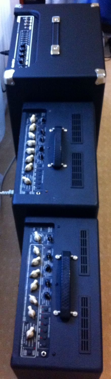 Bigger than what I anticipated as it is only a 12" speaker yet the box looks big enough to house a 15"....it dwarfs the 2 Vox Amps where the tiddler is a VT40+ with a 10" speaker whilst piggy in the middle is a VT80+ with a 12" speaker. Sounds sweet but could only play it soft today as the minister for war & peace was home and was trying to Skype our Son & daughter-in-law who live in NZ.