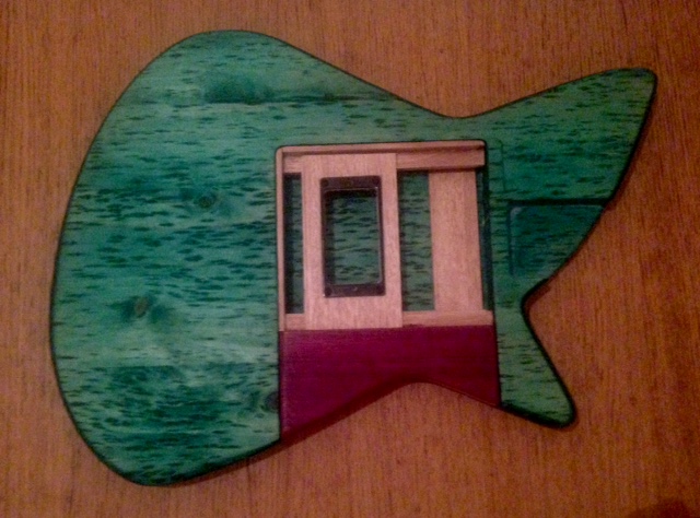 Saw this timber before Christmas at work it was a length of 70x35 T2 Pine (framing timber) had really unusual birdseye figuring so had to grab it. Wouldn't normally make a guitar from radiata pine especially six pieces, however this is going to be a "Testing Guitar" it will have a slide out drawer that various pickups can be secured into to test. I have about 40 different pickup samples on the way so it should get a workout![]()