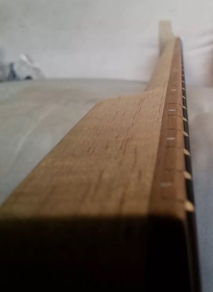 So now I have to think about how I'm gonna Finnish this neck, how I'm gonna shape the headstock and how I'm going to level and dress the frets.