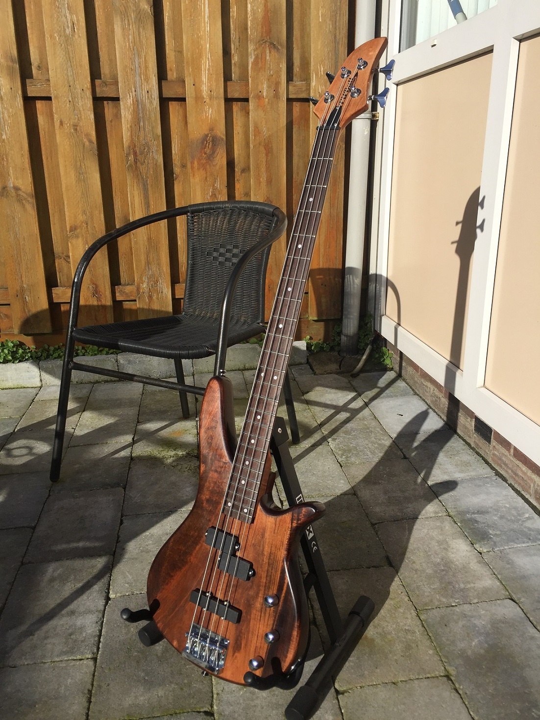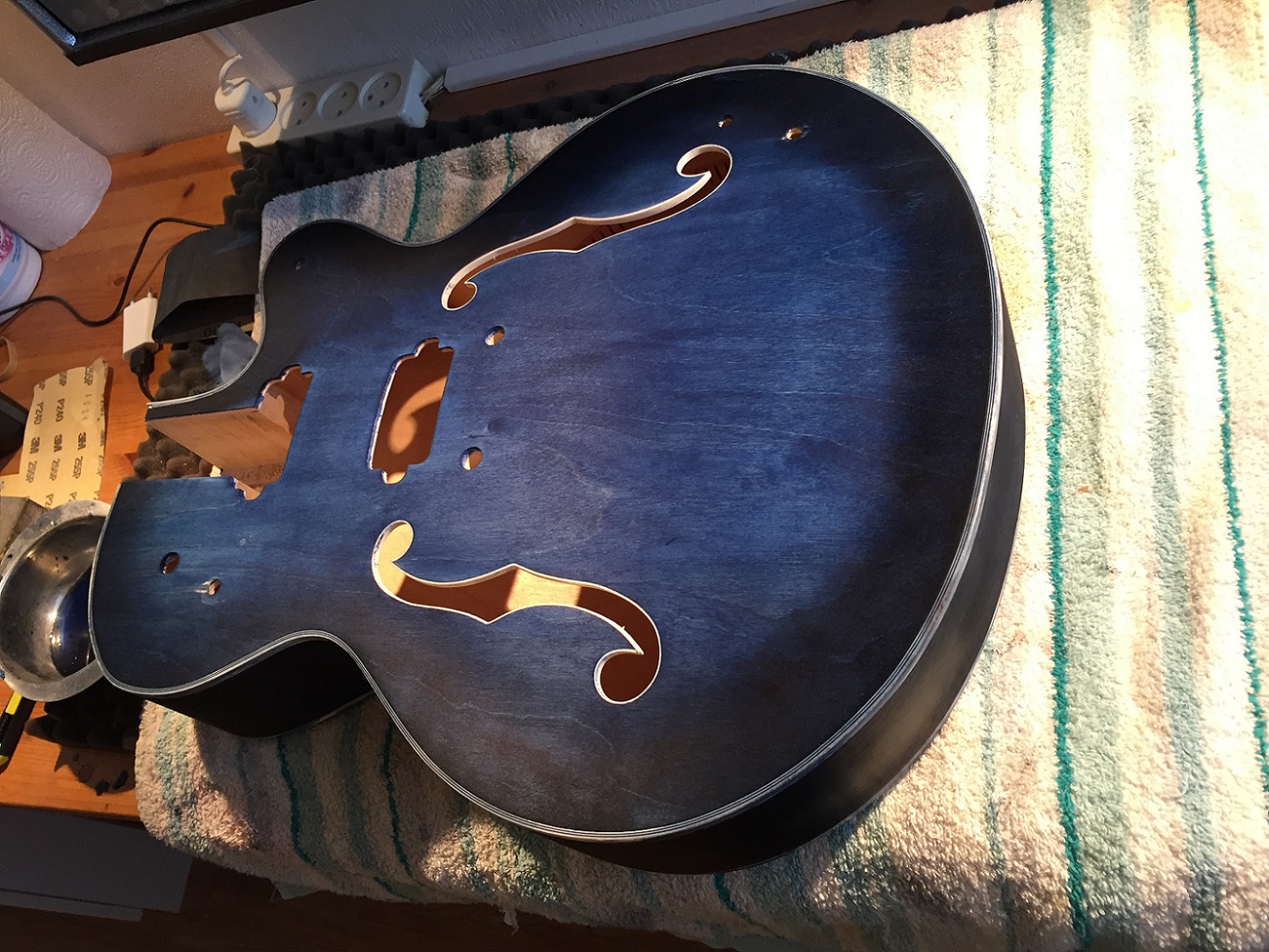 I stained de body with the stain from a tru-oil set for rifle stocks, also did the neck with that but kept it a lot lighter.