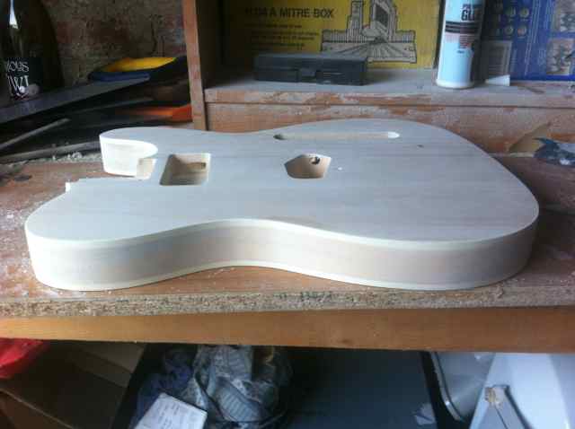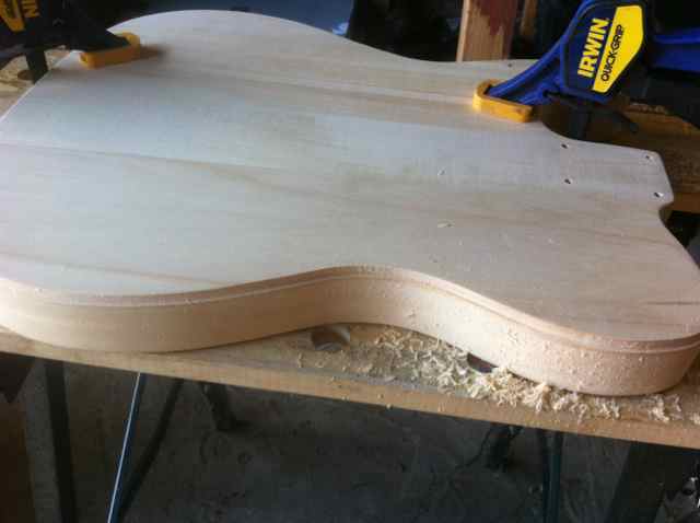I got this tele kit for christmas last year and was hoping to have something to work on over the holidays. This idea however was abruptly discarded after the router bit i was using to cut the binding channel slipped out a few mil and gouged a big chunk of wood from the bottom of my guitar.