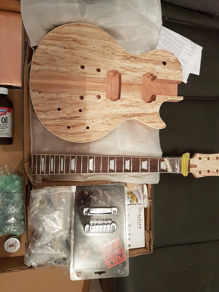 As for upgrades, not that much really, with it being the first kit I got all the additional bits and pieces, shielding, glue sandpaper, DT, basically just everything DB recommends on the site, saves me going looking later, so by the time you do that your well over 300 with the LP1-SS kit. I also did chicken out and got DB do the neck and head stock shaping for me as I'm very "tool lite" currently. The big expense was the Babicz hardware which was a bit oF an impulse buy, ( i need to stop doing that). Still deciding on pickups.