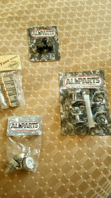 Real Parts parcel has arrived. I like the tuners...love the knobs...the bridge is a little different.